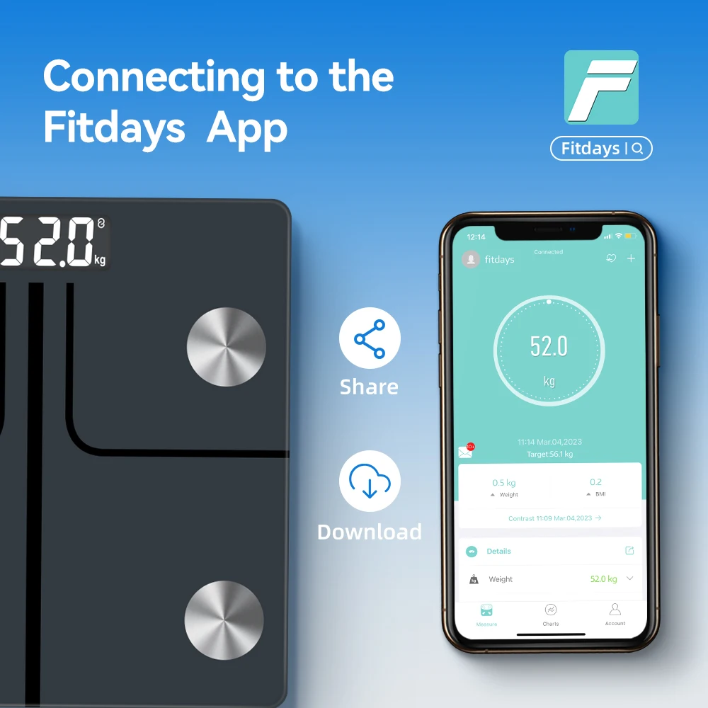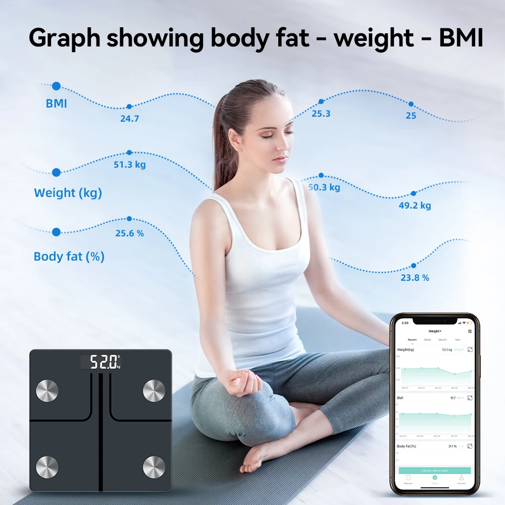 Body Fat Scale Weight Bathroom Smart Digital Bluetooth Scale with Smartphone App, Body Composition Monitor for Body Fat, BMI, Bo